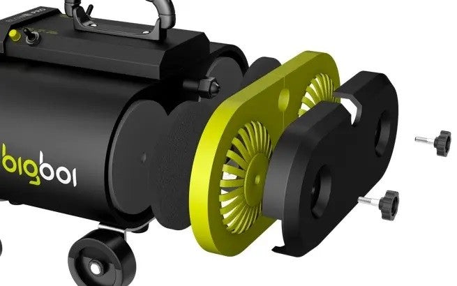 El BigBoi BlowR Pro es la unidad más potente, con dos motores de 1600 W que usan aire filtrado y calentado para expulsar el agua de la pintura, el metal, el vidrio y el cromo. Elimina fácilmente el agua de detrás de las insignias, aperturas, carcasas de los espejos y otras zonas de difícil acceso. El BlowR Pro se suministra con boquillas intercambiables para garantizar que el aire pueda dirigirse a lo largo de los canales y ranuras. La función de tecnología de temperatura BigBoi (BTT) asegura que el BlowR Pro use aire calentado a 20ºC por encima de la temperatura ambiente para un secado y evaporación óptimos. Seleccione entre cuatro velocidades de aire según la tarea en cuestión.