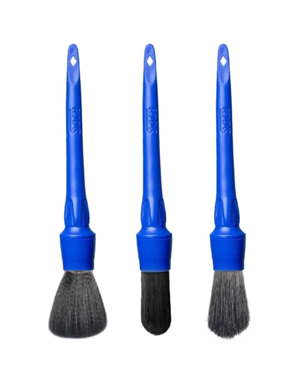 Juego de brochas suaves para detailers de automóviles. Se compone de un juego de tres brochas, diseñadas para limpiar y eliminar la suciedad de lugares difíciles. Sus mangos de gran resistencia al desgaste están fabricados con polipropileno y se adaptan cómodamente a la mano con un agarre seguro.